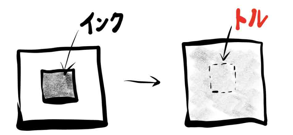 一方で、熱以外でエントロピーが増大する現象を「不可逆過程」と言います。たとえば、二層構造になっている系を考えます。内側の層にはインクが入っていて、外側の層にはインクはありません。内側と外側を仕切っている壁を取り外します。すると、系全体にインクが広がります。系全体にインクが広がった状態の方が、エントロピーは大きい(乱雑さの度合いが大きい)と表現します。